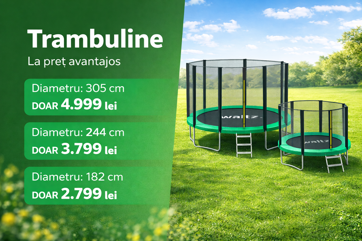 2.299 MDLPrețul curent este: 2.299 MDL.Trambulina WALTZ PE 3,05 Verde