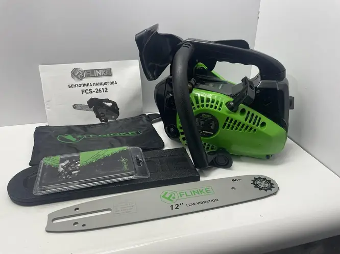 Fierăstrău cu lanț Flinke FCS-2612 – un instrument fiabil și sigur. Combină o construcție robustă, greutate redusă și funcționare eficientă și stabilă. Fierăstrăul poate fi utilizat în gospodărie, pentru tăierea lemnului de foc și pentru întreținerea grădinii.